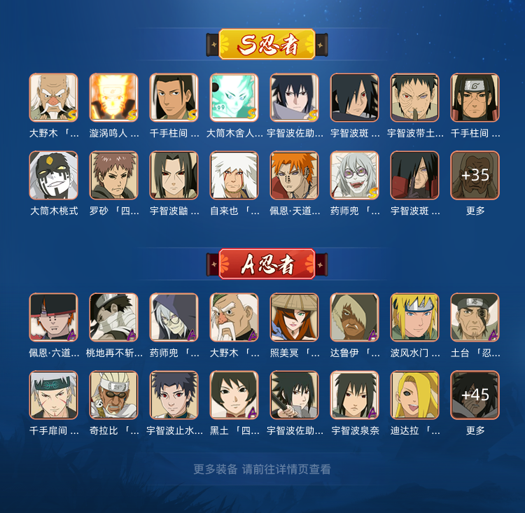 泳装鼬 秽土解斑 漂泊佩恩 漂泊小南 陆地战神扉间 忍界大战迈特凯 干柿鬼鲛鲛肌融合等热门忍者