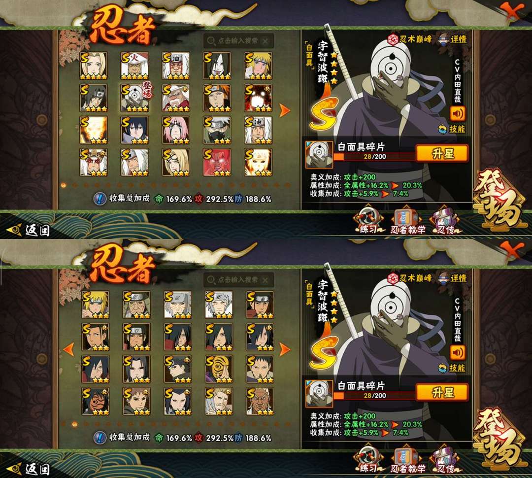 50S62A✨3000W战力⭐漂泊带土小南佩恩❤️全高招忍者多点券忍者❤️有熊猫