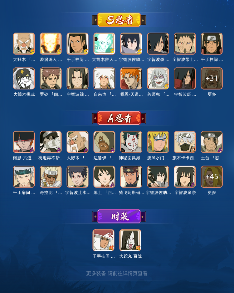 47S 63A 全部c忍 317忍者 干柿鬼鲛「狂野鲛鲨」/宇智波带土「忍界大战」/宇智波斑「木叶创立」/佩恩·天道「超」/永恒佐助/创立柱间