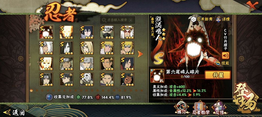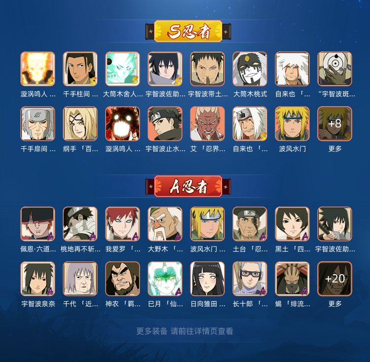九喇嘛水门、仙人巳月、1167w23S六尾鸣人、传说自来也、须佐卡卡西、宇智波佐助「侠隐江湖」