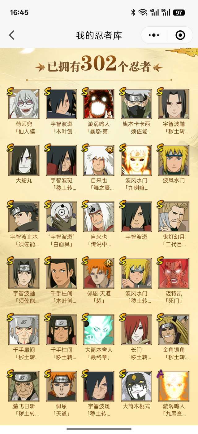 29S⭐️63A⭐️全时期宇智波斑⭐️全漂泊忍者⭐️天道超⭐️小胡子⭐️金角银角⭐️