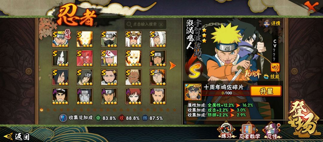 通灵须佐能乎❤️初代目风影❤️十周年鸣佐❤️15S✨30A♈️164忍❤️1200w战力39魅力V0