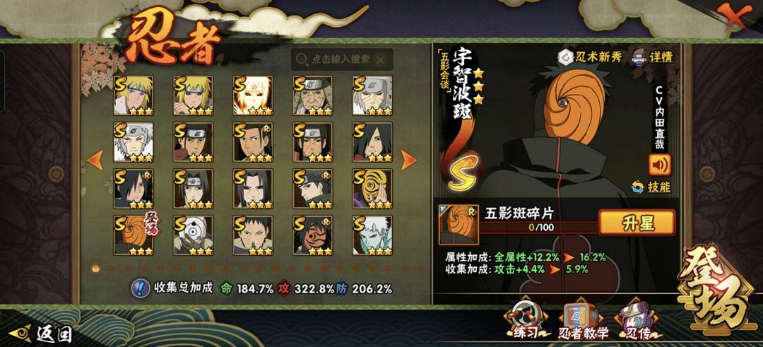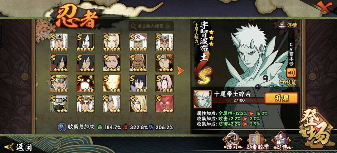 十尾带土已秒,56S,3000万战力,暴怒小孩、鸡翅佐助多个点券忍者,可团本可决斗场,性价比之王
