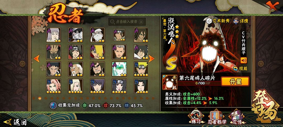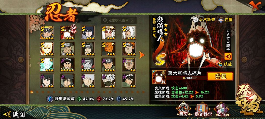 金身水门+仙人巳月+永恒佐+五影斑+暴怒六尾+漂泊再不斩+夏日卡卡西+漂泊带土。