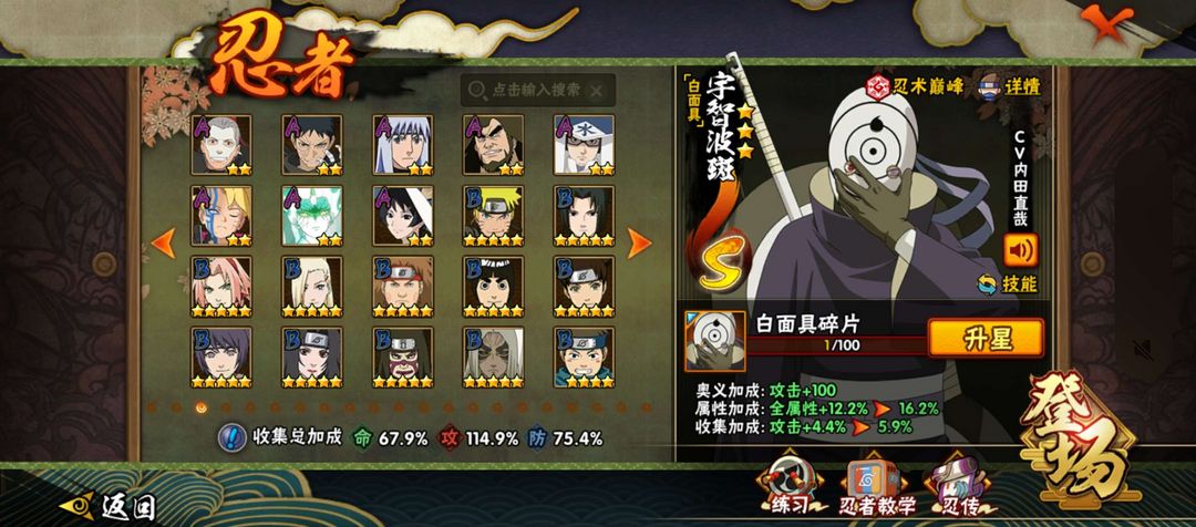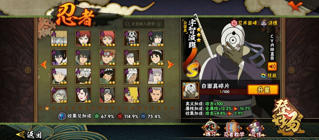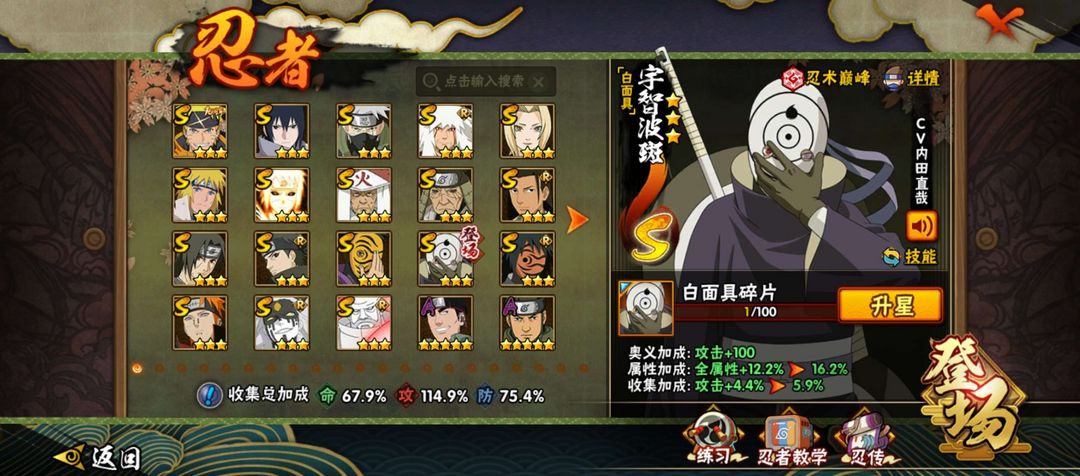 18个s30个a创立柱间,瞬身止水,漂带,侠佐,千万战力。