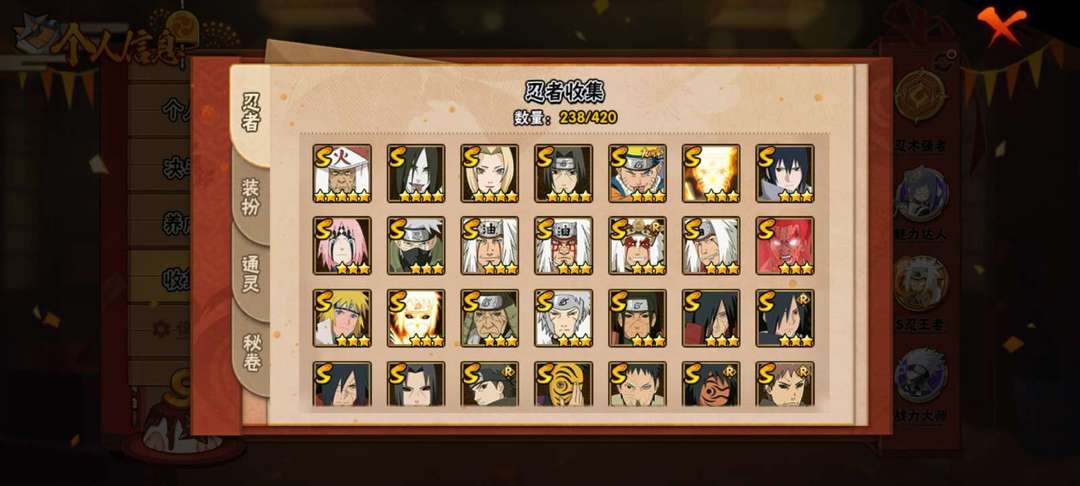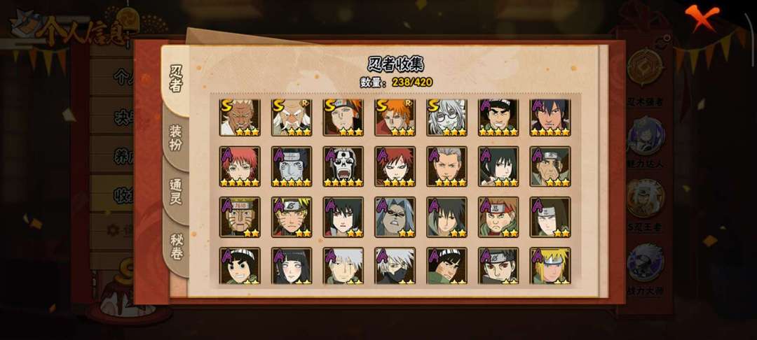 32S 62A 238个忍者,漂泊带土 漂泊小南 漂泊佩恩漂泊扉间等 1728w战,无氪金通灵