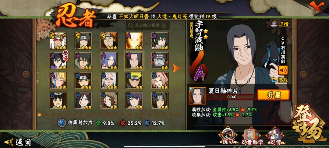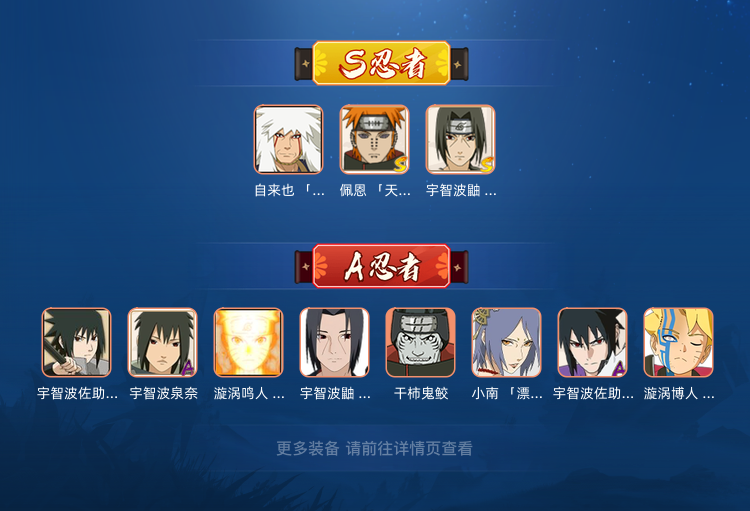 侠隐佐助,漂泊小南,夏日鼬。。嗯嗯,游戏。VIP等级7级。