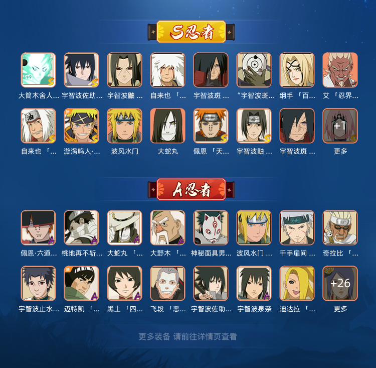 s:舍人 金水 秽土斑 解斑 忍战樱 白面具秽土鼬等a:新春止水 新春小南 漂泊扉间 漂迫小南 盾狗