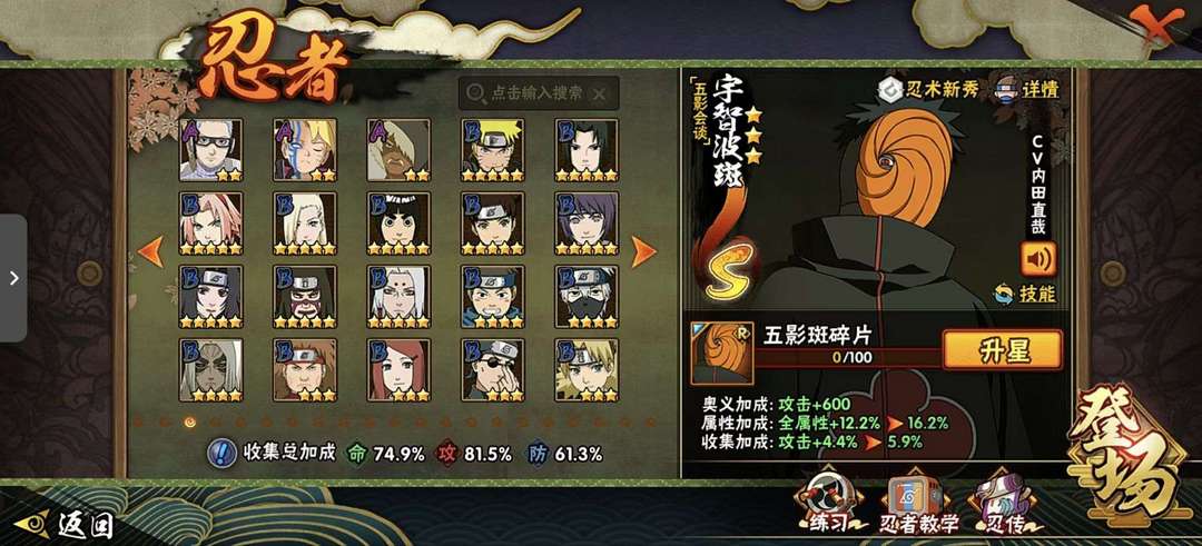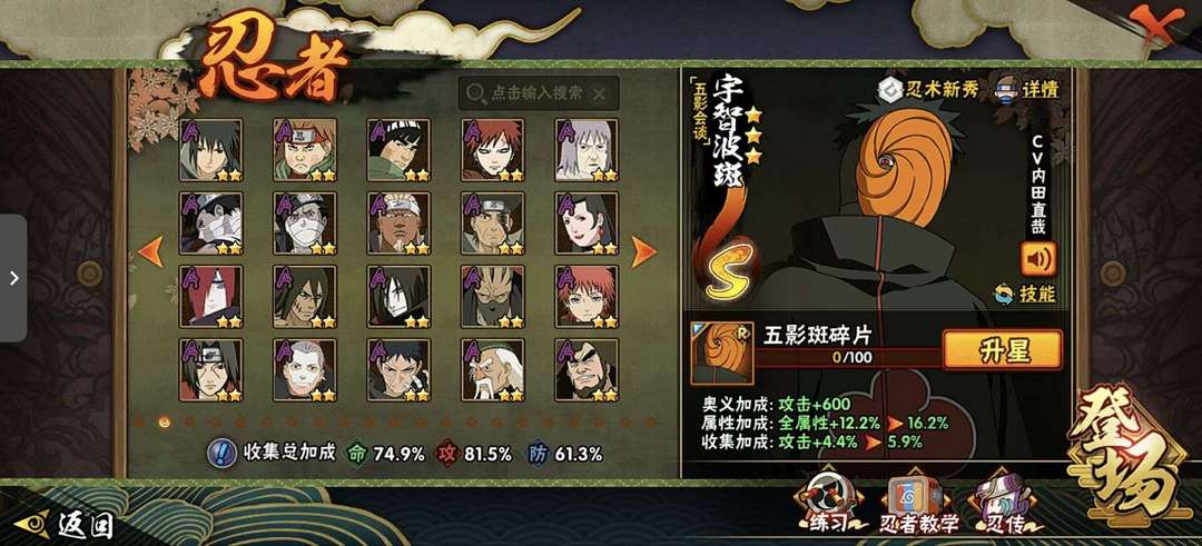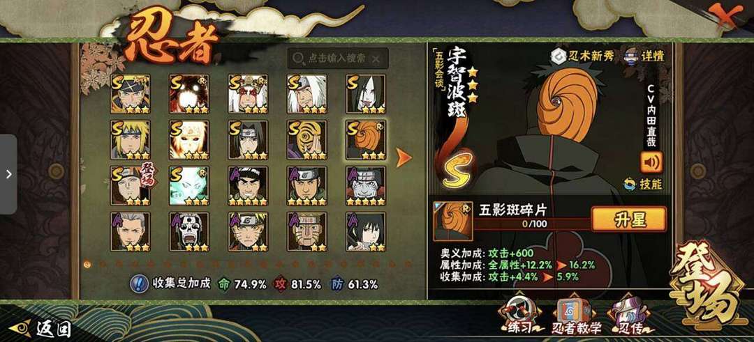 五影斑,传说自来也,九喇叭水门,大筒木舍人,六尾鸣人,漂泊带土,晓蛇,恶灵飞段,熊猫