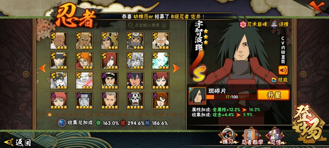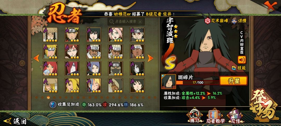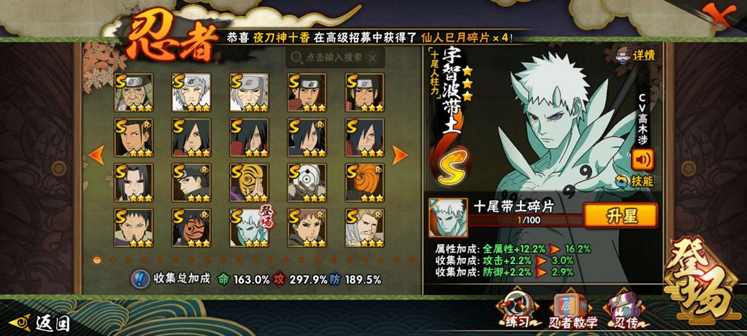 53S 62A六道带土秒出!五影斑已秒,全高招全忍法帖账号。决斗场有熊猫战力将近3000w