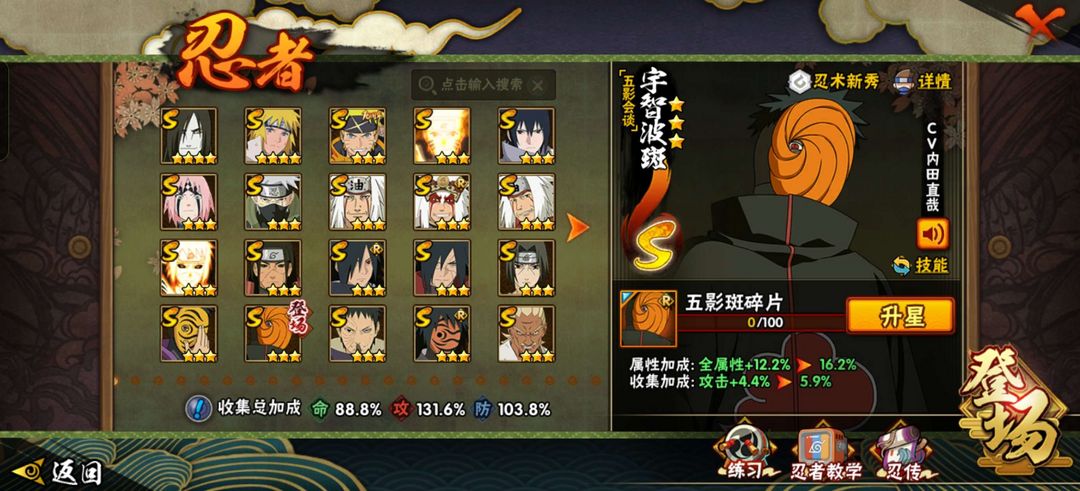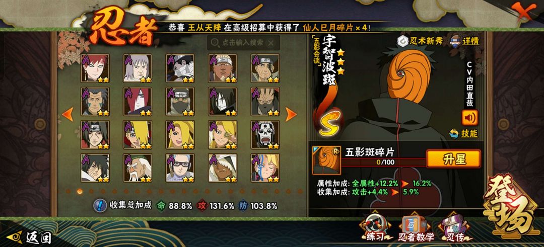 暴怒带土,新春水门,新春迪达拉,新春我爱罗,阴九尾,创立斑,忍战大野木,五影斑,红夜带土,22S,40A