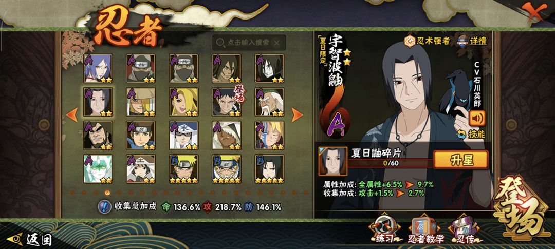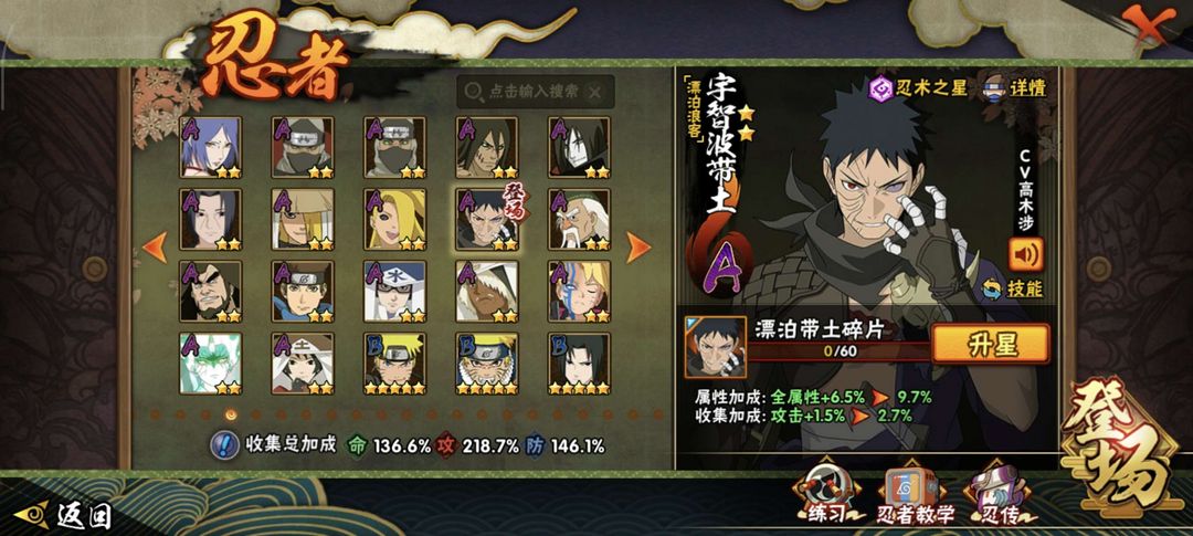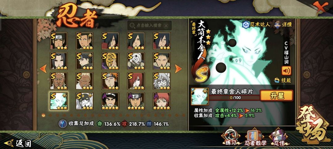 37s✨漂泊带土✨暴怒六尾✨舍人✨创立柱间✨金身水门✨须佐止水✨大筒木桃式✨双s雷影✨须佐卡卡西✨鸡翅佐助等众多s忍者和A忍。