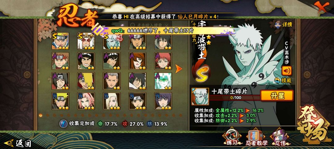 十尾人柱力带土仙人巳月+暴怒小孩+羁绊鸣佐等等