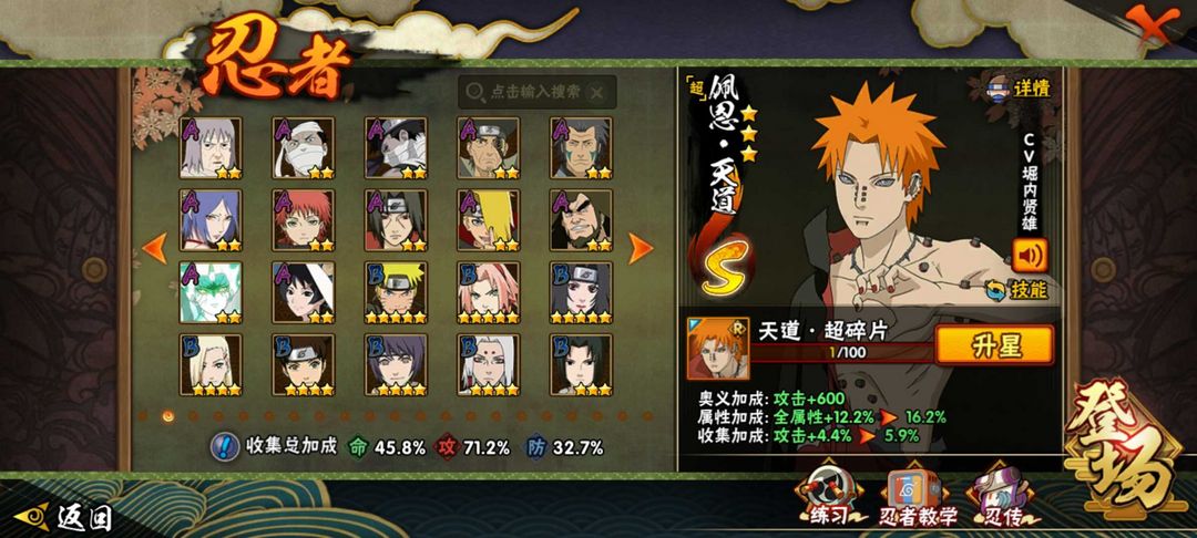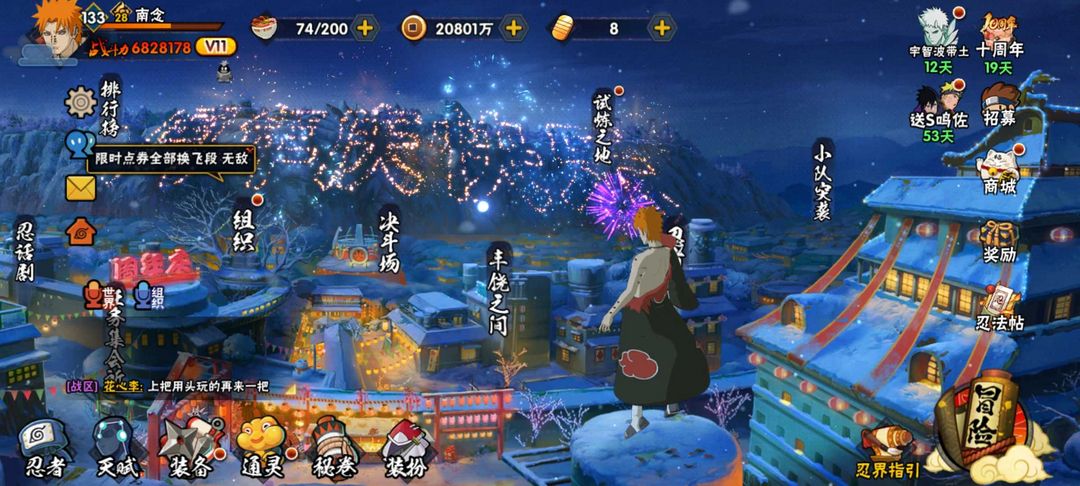 天道超/三忍自来也/六尾鸣人/阴水/漂泊小南、再不斩/秽土斑/五影斑,682w战力,v11