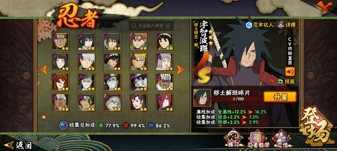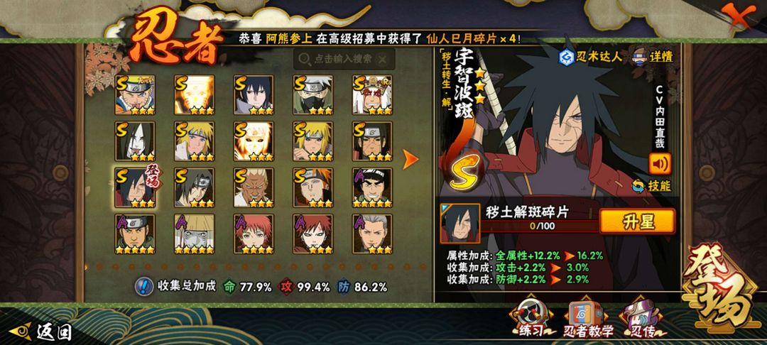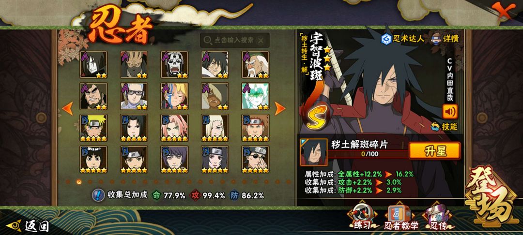 秽土解斑 须佐卡卡西 须佐佐助 永恒万花筒佐助 九喇嘛鸣人 秽土柱间 舞之豪杰自来也 秽土水门 水门