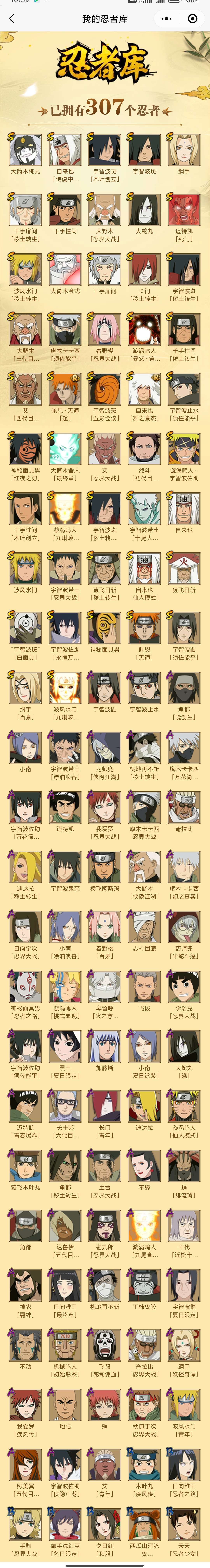 高配47s忍,66a忍,熊猫,漂泊小南+带土,侠隐兜+佐助,卑留呼等点券a