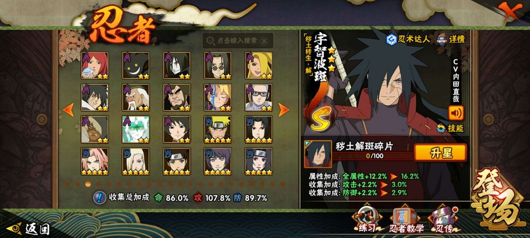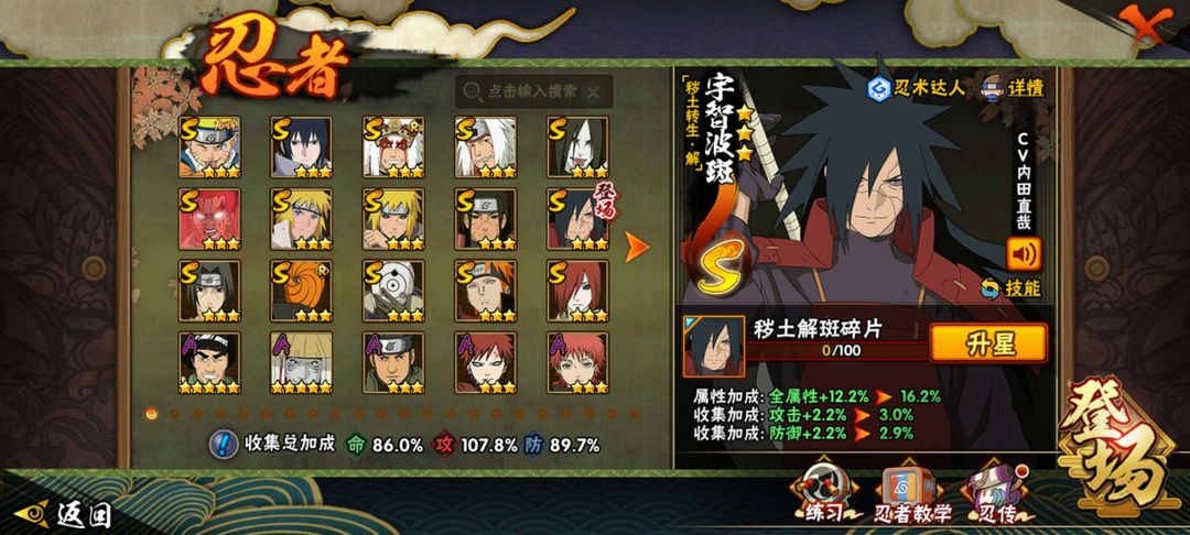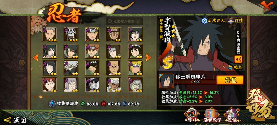 15S,38A,黑绝、新春鼬、五影斑、白面具、植物人、死水、传说自来也、解斑、长门、死门凯