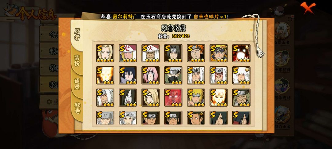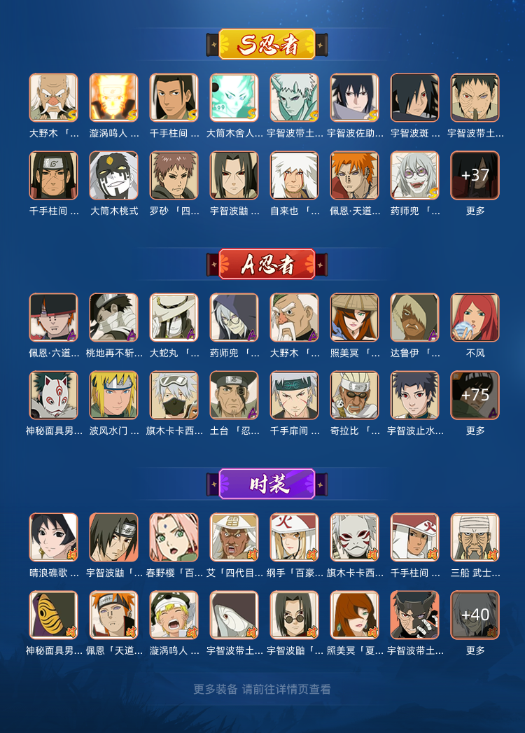 54S,92A(神驹佑将斑已秒),黑绝,暴怒小孩,鸡翅佐助,惊门凯,忍战凯,新春系列,夏日系列
