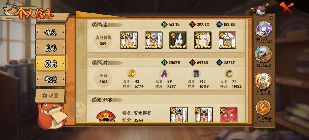8个328带阿飞★所有新春忍者★18只98通灵★42s★89a★369忍★雨隐村云隐村