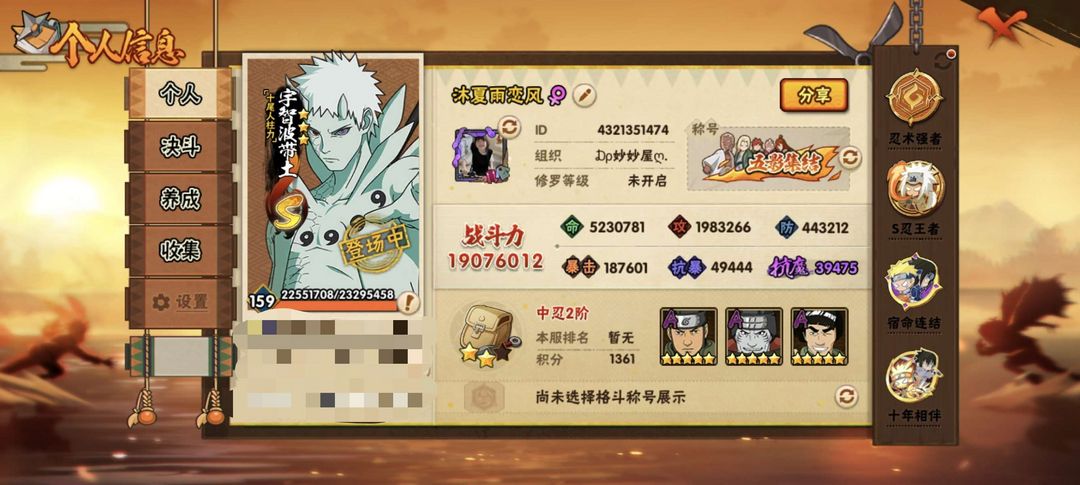 1900w战力34S 52A忍 忍战带土 宇智波斑 波风水门 十尾带土