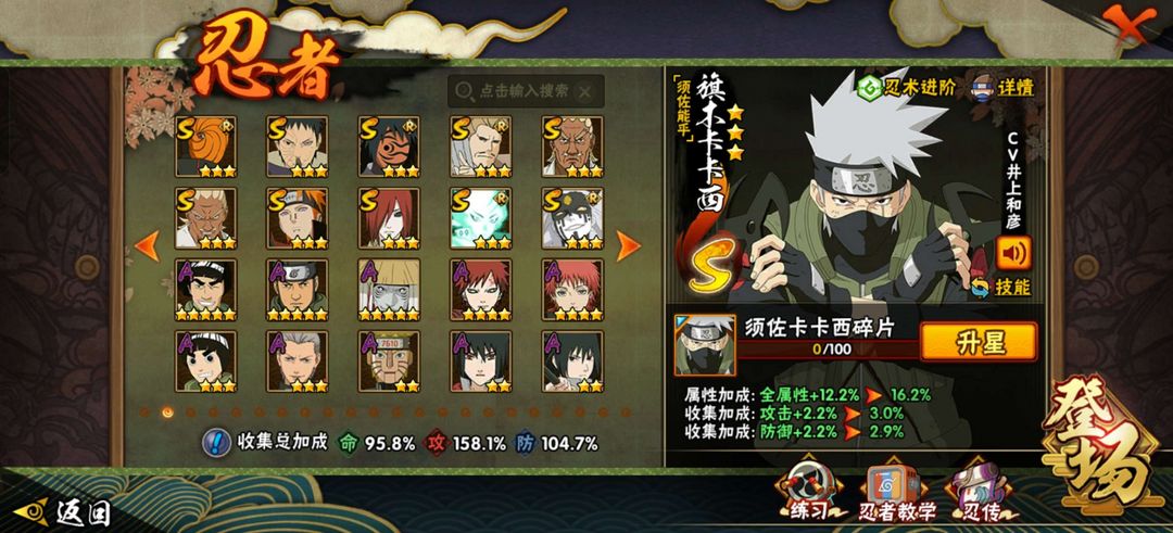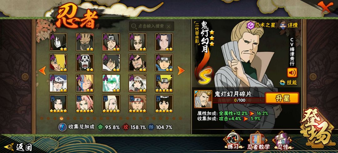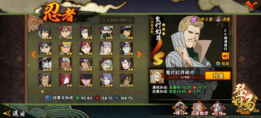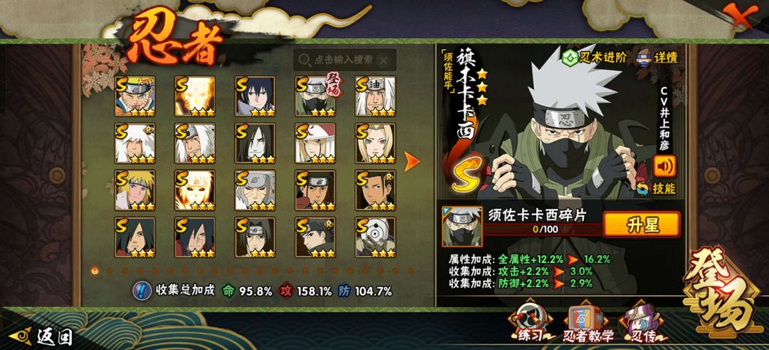 30s,44a,小胡子,须佐止水,漂泊佩恩,夏日鼬,新春鼬,红面具,小孩,除忍法帖秘卷均达到十级