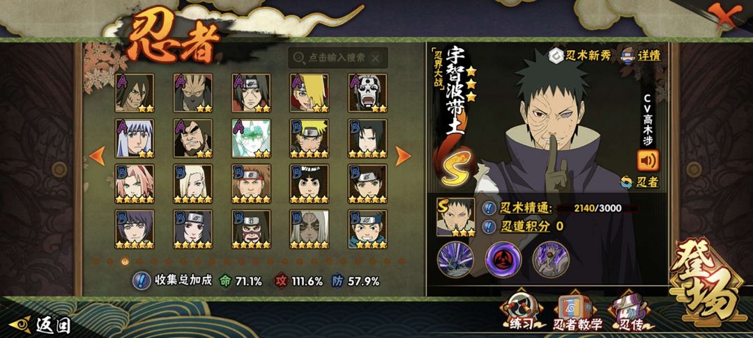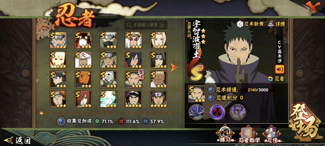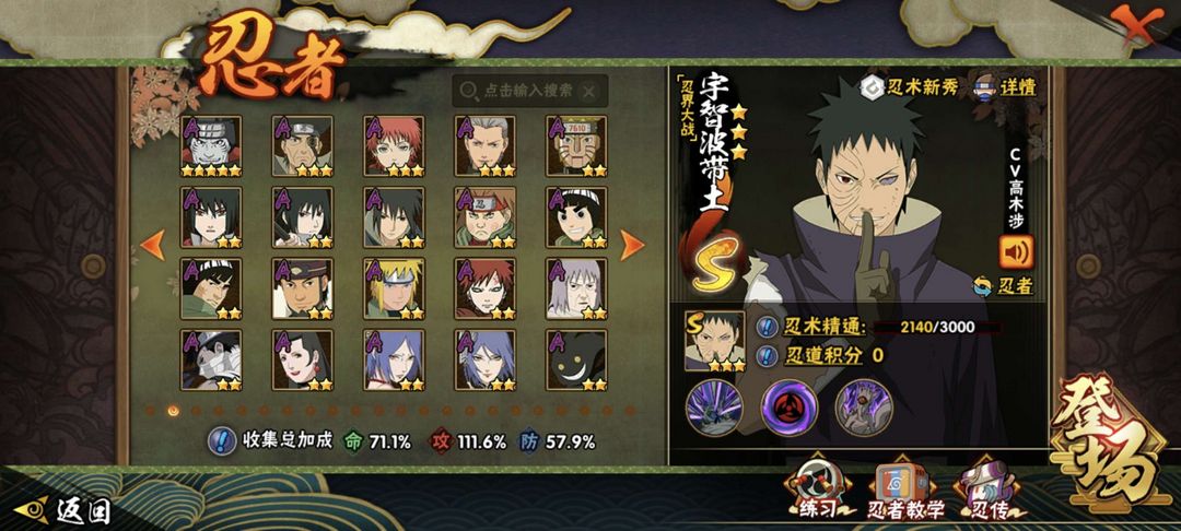 18个s忍30多个a忍超多忍者有,有无脑忍者,也有非常吃操作的忍者。