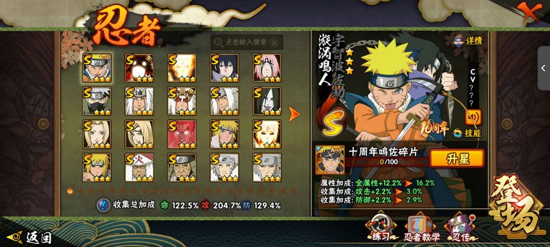 有最终章场景,忍者多可玩性高,战力勉强能带低级团