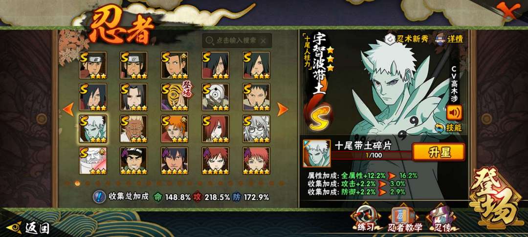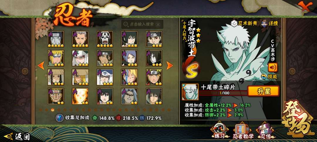 36S❤️65A❤️天道超❤️带土(十尾人柱力)❤️高招S除雷影扉间全都有,全高招A❤️部分忍法帖