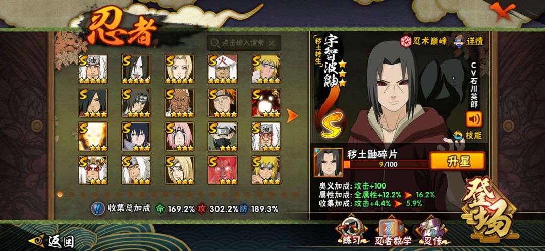 阴水门!初代风影!六尾鸣人!秽土再不斩!神农!传说自来也!百战鼬!绯琉琥蝎!漂泊带土!须佐卡卡西!须佐止水!百战佩恩!忍战小李!忍战雷影!大筒木桃式!解斑!木创柱间!漂泊小南(佩恩+扉间)!忍战宁次!永恒佐助!红月面具!忍战樱!不风不缘!水影长十郎!侠隐纲手!侠隐照美冥!金式!青年长门!九喇嘛鸣人!泳装帕库拉!忍战大野木!青年艾!死门凯!木创斑!忍战带土!达鲁伊!白面具!虎皮!须佐鼬!青水面麻!秽土初代,二代,三代,四代!!泳装小南! ~~秽土鼬~~~天道超-~~~暴怒带土----!秽土斑!三代雷影----仙人兜~~~~~ 等全365忍者 和服花火,万圣节君麻吕,护士琳 两千多万战力 加藤断 泳装琳,小李,纲手,萨姆依等泳装忍者 通灵-熊猫/二尾/鹰/蜘蛛/怒鬼等。 密卷全部有 决斗场,排位赛都可以打。 勿毁号。