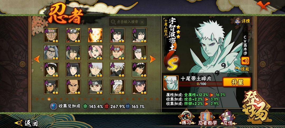 50S♐66A♐全高招s/a忍者2300W战力♐阴九尾水门秽土解斑♐十尾带土♐忍战雷六尾鸣人♐五影斑