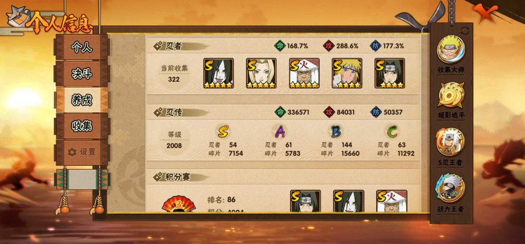 54S忍者:十尾带土;长门 「秽土转生」;宇智波斑 「秽土转生」;宇智波鼬 「须佐能乎」;千手柱间