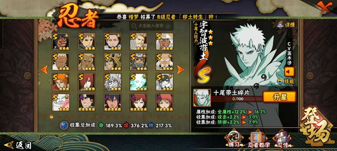 【安卓273区】该账号有直购通灵熊猫,二尾等。2000万战斗力S忍者:忍战小樱,大筒木金式,九喇嘛鸣人,木叶创立斑,死门凯,忍战带土,罗砂,秽土柱间,秽土鼬,天道超,仙人兜,三代雷影艾,秽土斑,仙人自来也,纲手,自来也,大蛇丸,百豪纲手,水门,秽土四代,三代,秽土三代,二代,秽土二代,初代,斑,须鼬,面具男,白面具,鬼灯幻月,雷影,金角银角,半藏,无,佩恩,长门等42S。A忍:青年长门,青年艾,博人传达鲁伊,青年水门,博人传黑土,暴怒带土,须佐能乎佐助,秽土迪达拉,武士再不斩,新春水门,泳装小南,新春鼬,秽土阿斯玛,地陆,猿飞木叶丸,九尾鸣人,半蛇斗篷药师兜,忍战勘九郎,年轻三代,晓创生角都,忍战我爱罗,近松十人卫千代等40个热门A级忍者。B忍:面点天天,和服花火,泳装李洛克,泳装雏田,忍战牙,忍战志乃,圣诞雏田等各种热门B忍,还有各种C级忍者,白菜价出租,喜欢可以收藏,谢谢配合