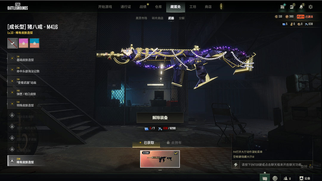 可排位-⑤级猪八戒M4✅破碎元素mini✅自动化QBZ✅爆裂者G36C✅糖果ACE✅海光雅蓝莫辛纳甘