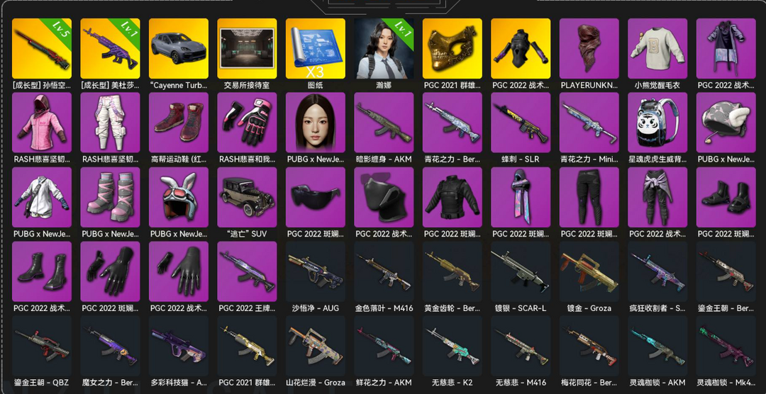 二级138138√保时捷跑车√5级悟空M24√美杜莎M762√竞争者翰娜√金面具√女团√发光手臂√