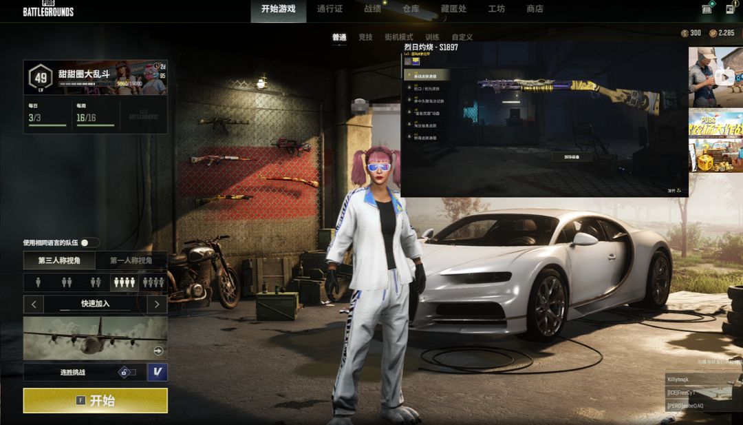可排位-2套白运动星魂布加迪超级跑车①异色烈日S1897绷带AKM完美ACE镀金98K
