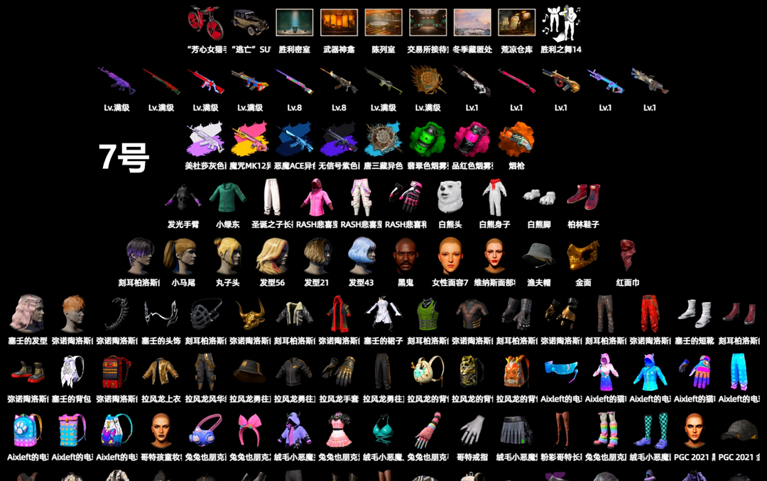 【7号】8满5异色〓满级异色牛头美杜莎+满级悟空+满级aug+满级mini+满级彩虹M24〓各种跑车