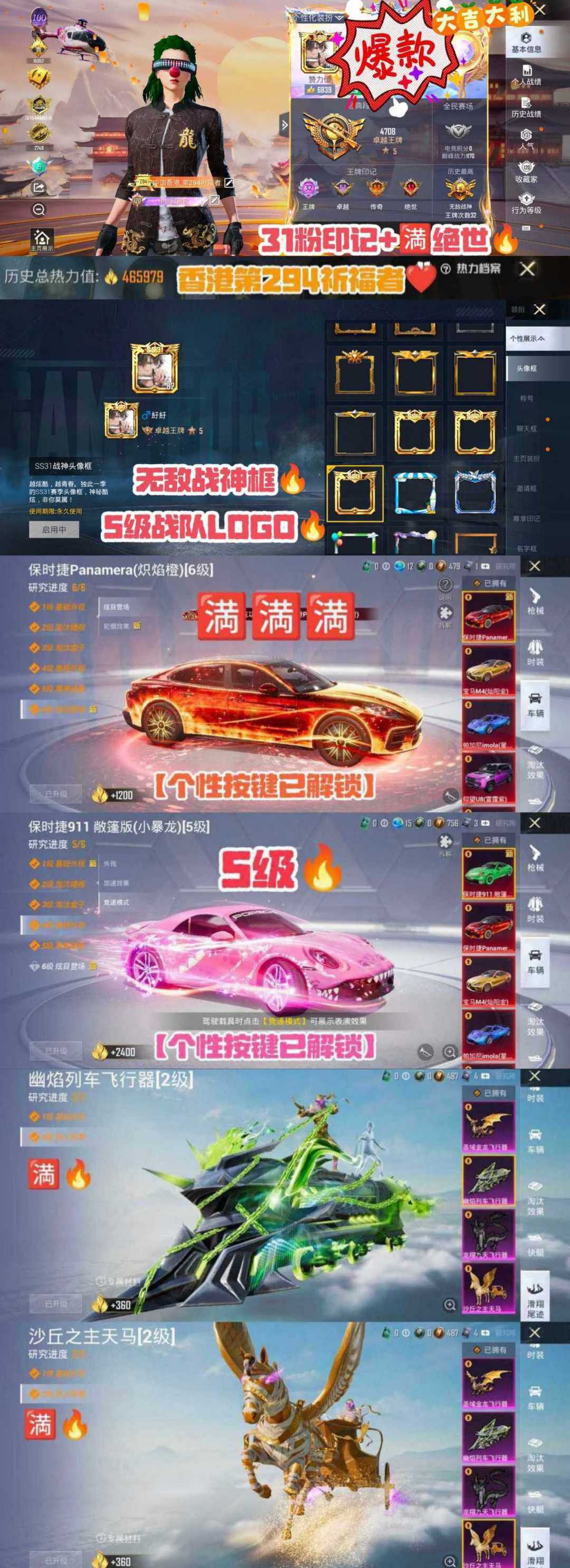 满级⑧红装 满级保时捷 龙师傅 满绝世金标 ⑮把9级枪⑦升级车47万热150粉50特21车