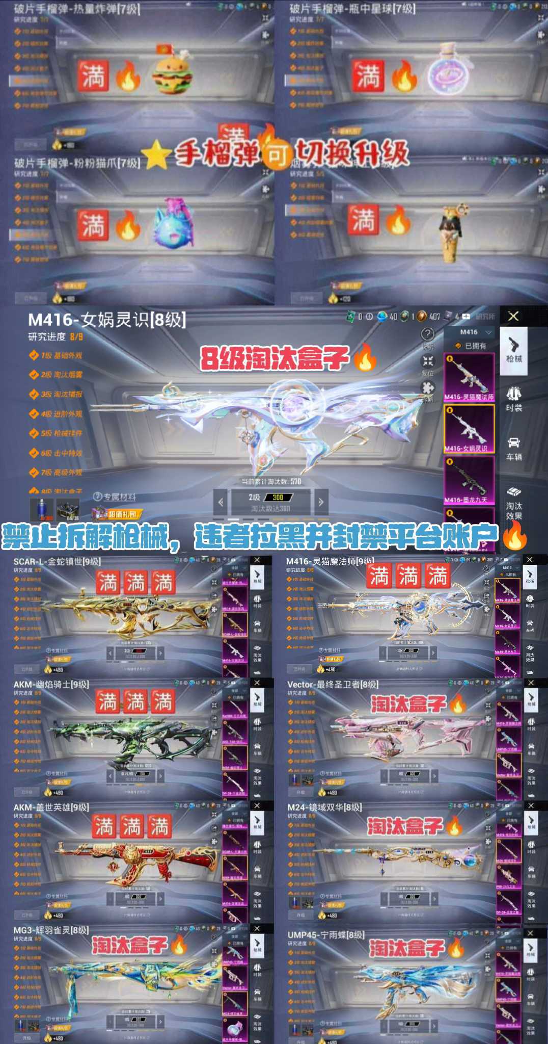 ❤️拆解枪械载具永久拉黑,如果装备与图片描述不符请撤单,不要去拆解。 ⭐账号价值高,累计充值几十万,如开挂或使用第三方造成封号,按累计充值金额起诉赔偿,打官司追究到底。 ⭐⭐注意事项: 1、拆解枪械拉黑处理并上报封停平台账号!!! 2、禁止伤害队友、频繁逃跑游戏,违者永久拉黑。 3、如造成禁麦禁言,拉黑处理,请文明游戏。 4、订单由平台客服处理,号主无权处理,有问题咨询平台客服。 ❤️温馨提示: 感谢各位老板的支持!!!协助登录后不跳转到游戏,可能是延迟,请手动去游戏登录界面查看有无登录。如果没登录,请关闭和平精英重新打开更新后再重新协助登录。