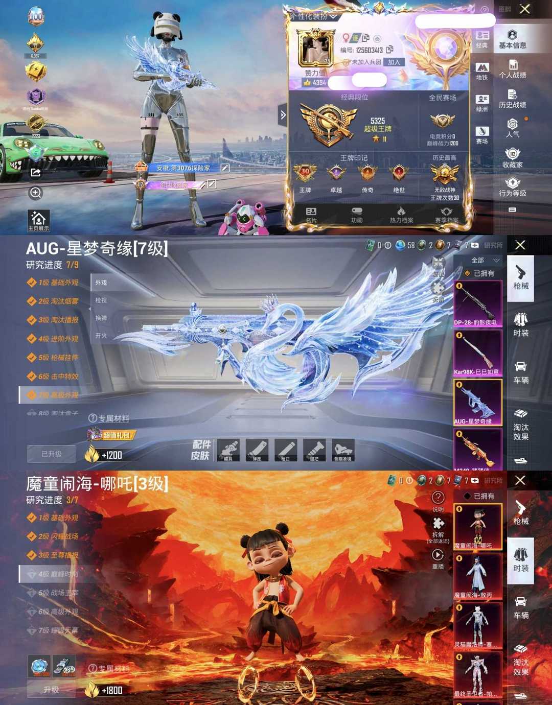 单字ID逐✨3级神装哪吒✨3个升级保时捷红蹦蹦aug星梦奇缘满级巧克力三姐妹木乃伊雪国都市✨