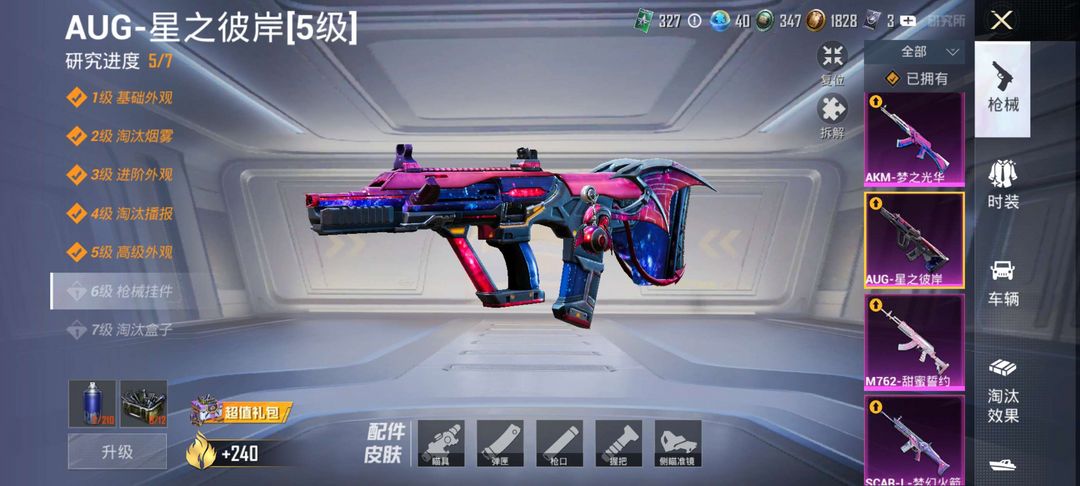 本游戏账号:特效枪数量8个,粉装数量16套,载具数量1个,优质装备有: M416-五爪金龙, M762-甜蜜誓约, AKM-梦之光华, M416-风花雪月, SCAR-L-梦幻火箭, AKM-奇异狩猎者, AUG-星之彼岸, M762-快乐主宰, 套装-幻影战神, 套装-极限特训, 套装-数码大师, 套装-天使彩虹糖, 套装-智能音符, 套装-梦幻火箭, 套装-花间之火, 幻影战神降落伞, 极限特训降落伞, 梦幻火箭降落伞, 甜蜜誓约降落伞, 花间之火降落伞, 蓝莓炮弹降落伞, 银刃赛罗降落伞, 合金龙骨(蓝), 幻影战神头盔(3级), 暗夜玫瑰头盔(3级), 梦幻火箭头盔(3级), 童趣迷兔头盔(3级)等,供您畅选,感受良好