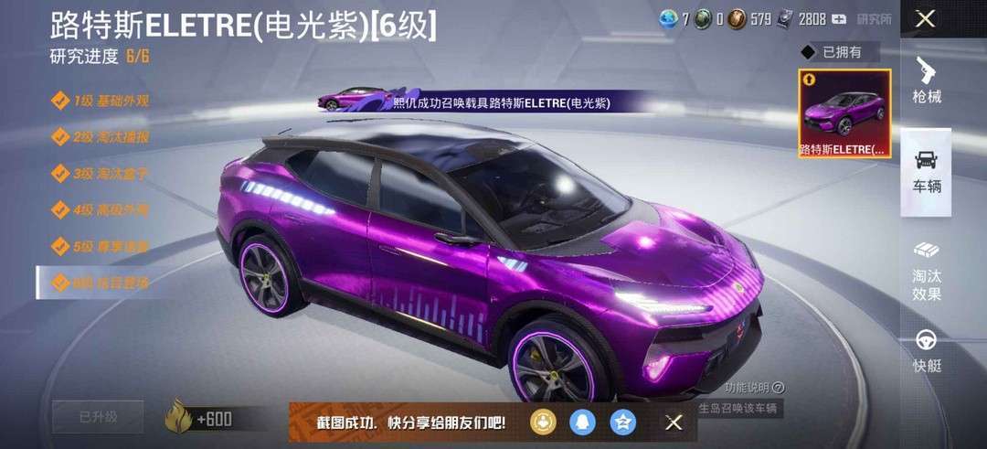 满级路特斯宾利敞篷跑车迈凯伦玛莎大话西游盖世英雄⭐飞机12载具15粉特效枪