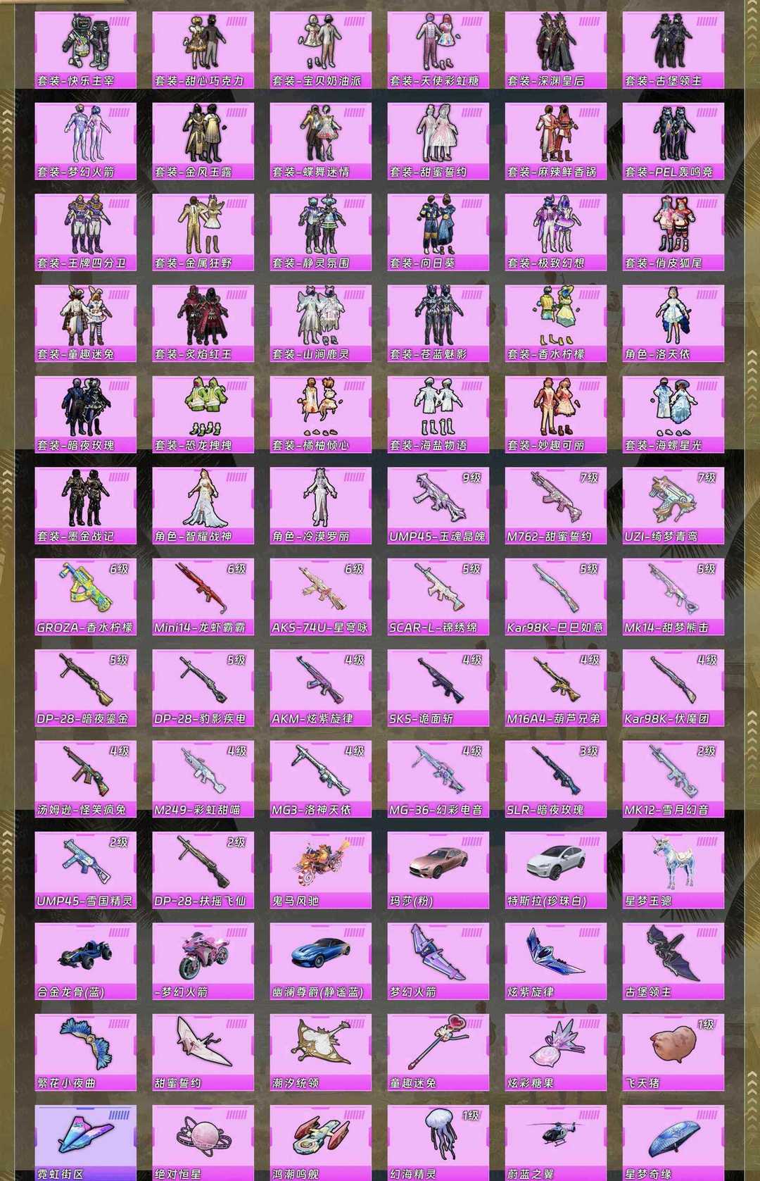 >>>>>毁号,涉及毁坏虚拟财产罪及计算机安全罪,请文明游戏素质游戏,恶意投诉偷盗必送黑名单 >>>>> 本游戏账号: 套装 2红装37粉装1僚机,特效枪加含升级手雷,升级烟雾数量43个,10个满级枪皮,载具数量7个,优质装备有: 5级图卡盟,第五大道,沙漠守护者(黑丝),巡查衣,洛天依,猪脸,火箭少女,甜心巧克力,天使彩虹糖,宝贝奶油派,9级至情至圣,9级御魂晶魄等,供您畅选,感受良好游戏体验! 特别声明!!!!! 【截图上装备已经很详细,东西只多不少。看清楚再下单,别跑去上号后投诉不想玩投诉取消必送进黑名单(上号IP过多就会弹脸。你不想玩,你不租就是啊,你上号不玩占了IP会影响号弹脸,那会影响其他老板体验必拉黑) 【乱投诉拉黑】 账号累计充值超20万!切勿开挂/分解装备/恶意骂人/等等违规行为,发现违规必追查到底(平台登录记录,游戏登录ip 手机号设备串号充值付款记录不要侥幸现在网警都能调到你的所有行为记录就算盗用他人信息也一样能查到你头上)按账号充值金额=起诉/刑事立案/追责赔偿! ⭐⭐感谢各位租号老板的支持,有任何建议请留言 ,喜欢点 ⭐收藏⭐方便下次租用,谢谢光临