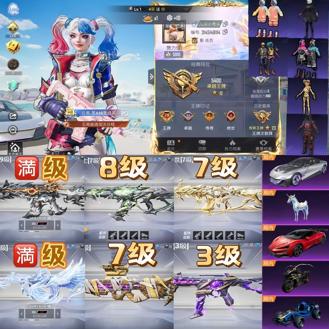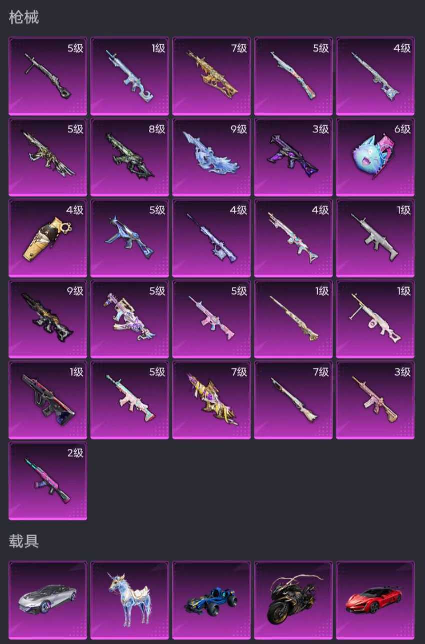 红装木乃伊/新小丑女/6号树人/SS1/6把9级特效枪/满级墨龙天鹅/5种不同载具类型