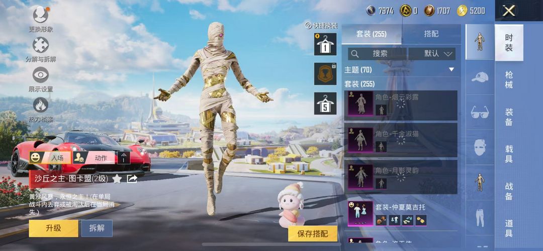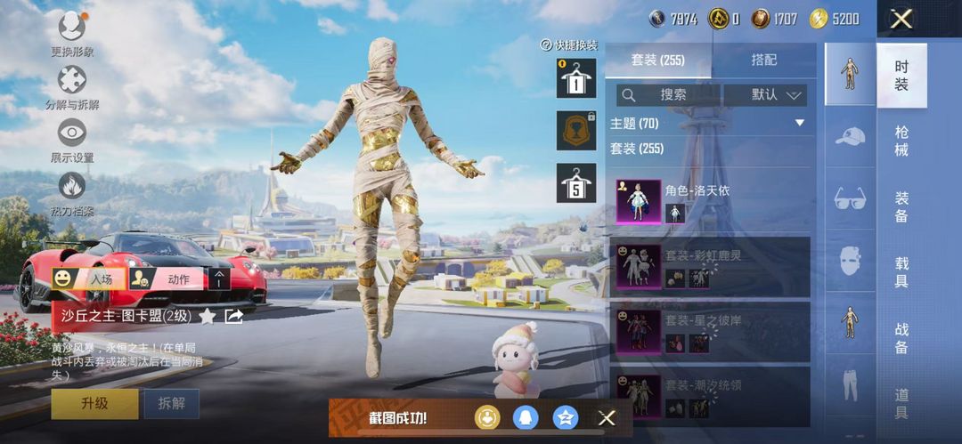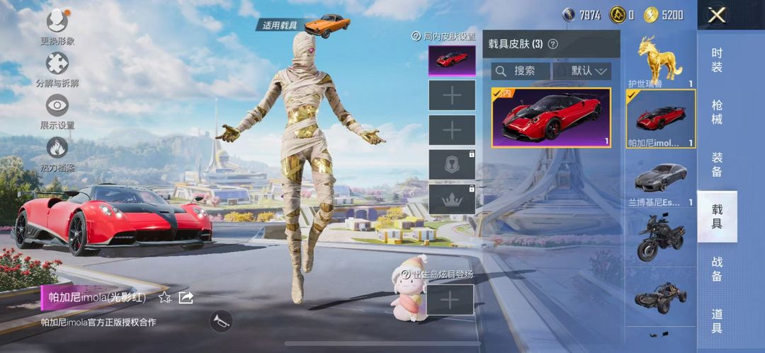沙丘之主木乃伊✨帕加尼✨护世瑞兽✨洛天依✨梦幻火箭✨兰博基尼✨3车皮✨9把升级枪✨