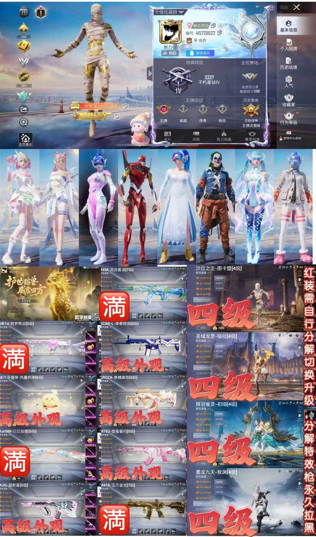 满级红装需要自己分解材料切换满级状态,如果分解车皮枪皮,会损耗材料,我们会拉黑。毁号行为涉及毁坏虚拟财产罪及计算机安全罪,请文明游戏素质游戏,让我们共建美好租号平台!