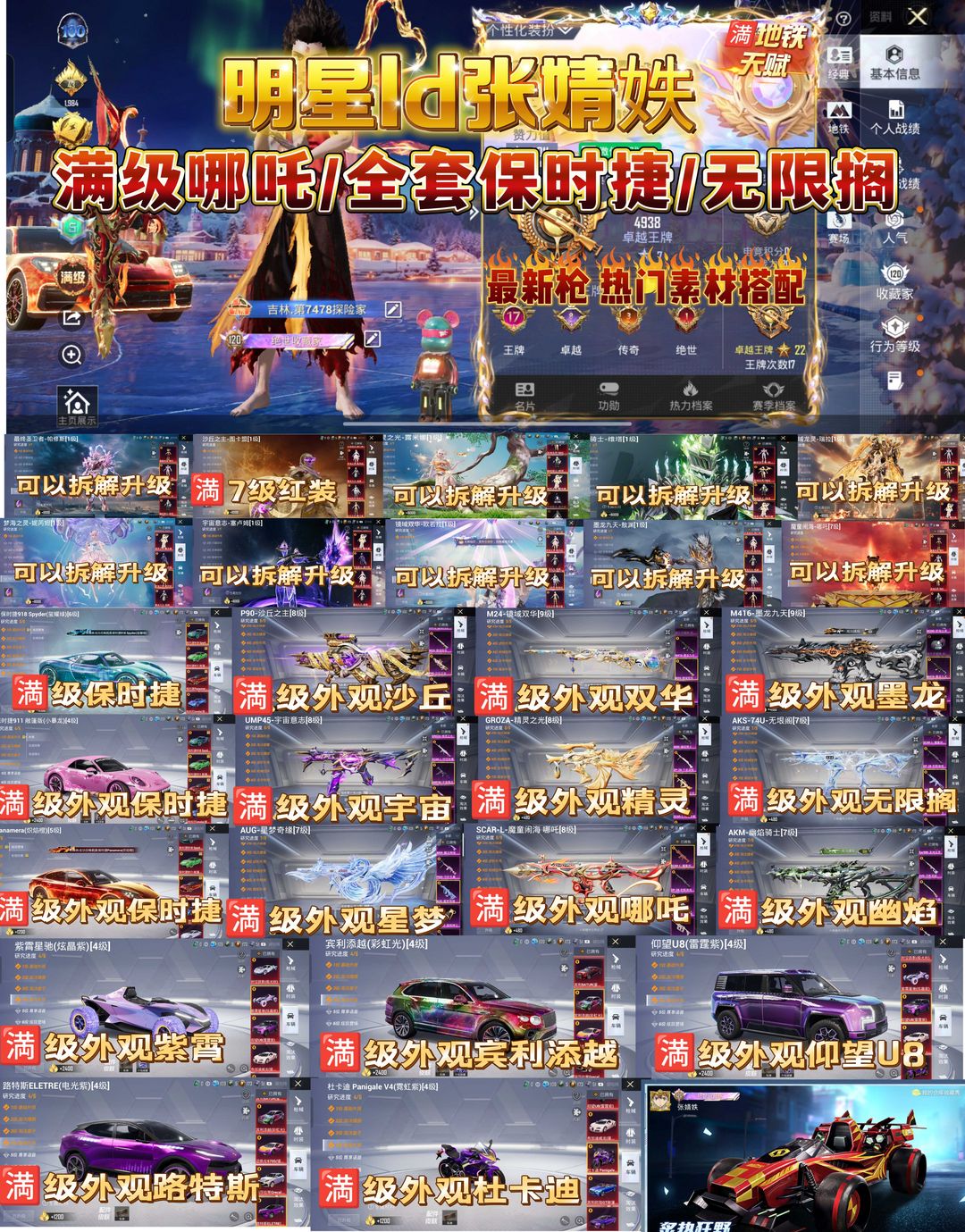 明星ID 张婧妷/极品素材号/满级沙丘之主/保时捷全套无限阁/星梦奇缘/满魔童闹海/星河领航/兵利/