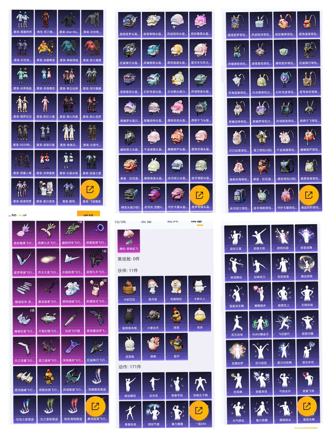 禁止开挂,禁止坐挂车,禁止骂人,禁止分解枪械等~谢谢宝宝们~ 套装416个,粉套56个,红色1个 枪皮563个,特效枪24个 载具皮肤12个 装备855个,三级头119个,三级包122个 滑翔尾迹29个,僚机1个,伙伴11个,动作171个 祝您游戏愉快~