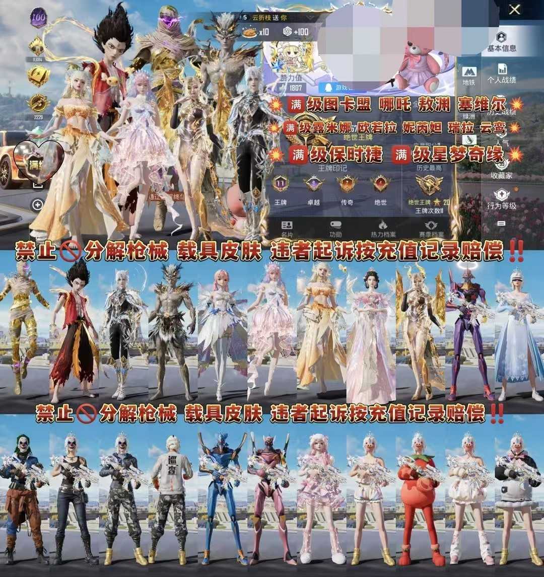 特别声明!!!! 分解枪械永久拉黑不解除 【乱投诉拉黑】有问题/上不去/其他问题/ 特殊需求/投诉没用等问题 账号累计充值超18万!切勿开挂/分解装备/恶意骂人/等等违规行为,发现违规必追查到底(平台登录记录,游戏登录ip手机号 设备串号 充值付款记录不要侥幸现在网警都能调到你的所有行为记录就算盗用他人信息也一样能查到你头上)按账号充值金额=起诉/刑事立案/追责赔偿! 非速玩【非云!本机设备畅玩不卡顿】