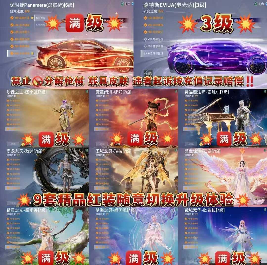 满天赋满素材✨满级哪吒图卡盟欧若拉9红装✨满级车保时捷帕美✨12把9级枪满级星梦奇缘哪吒闹海猛男套