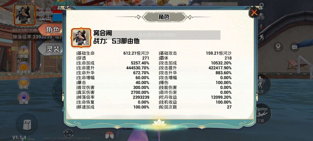 吃丹修仙,现在50那由他,可以秒13阶,240万倍率。